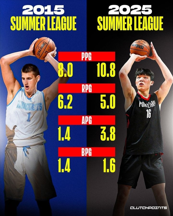 回顾约基奇当年的夏季联赛,他展现了全面的身手;而杨则在进攻端展现了更强的存在感,同时在防守端也有所贡献;