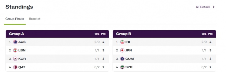目前,A组第二是黎巴嫩,他们小组赛收官战将对阵第三的韩国,黎巴嫩外线核心阿拉基缺阵,韩国大将吕俊锡因膝伤出战成疑;B组第三目前是关岛,他们最后一场小组赛对手是排名第二的日本。