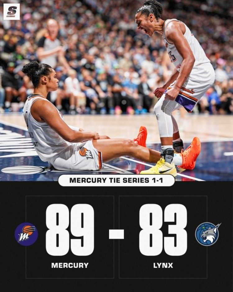 加时赛,山猫连续打铁,库珀三分助水星领先到6分,威廉姆斯和科利尔联手止血追到差2分,艾莉莎-托马斯连续罚球命中杀死比赛,最终水星加时89-83逆转山猫,大比分扳成1-1。