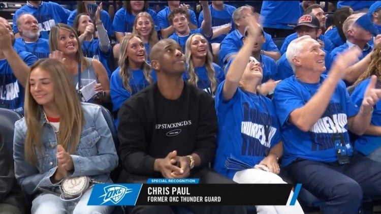 就在亚历山大接过今年的MVP奖杯时,他注意到一个可疑的身影。场边有个男子坐在自己妻子海莉的身旁。在雷霆此前的比赛中,他从未见过此人出现在场边座位上。这位雷霆后卫还没来得及皱眉,就认出了这位意外来客:昔日队友兼人生导师克里斯-保罗。