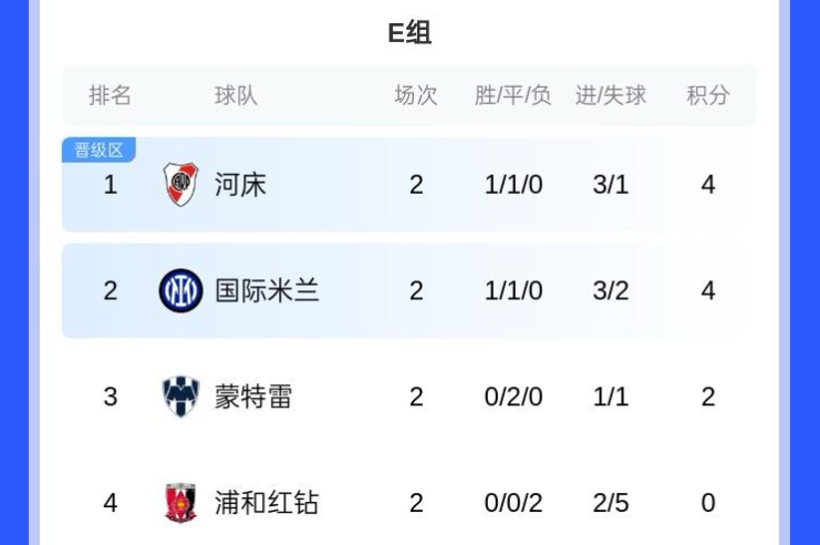 在E组中,蒙特雷两连平,本轮必须取胜才能保留晋级希望,浦和红钻则是两连败提前无缘淘汰赛。