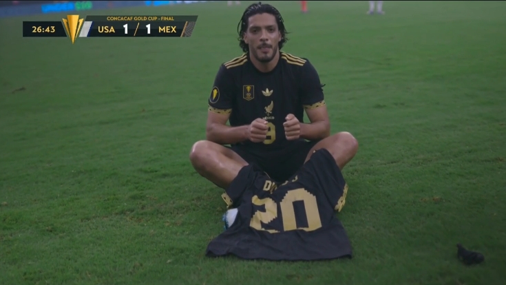 7月7日讯 墨西哥在金杯赛决赛中以2比1战胜美国,劳尔-希门尼斯成为比赛的关键人物。这位前锋在打进扳平比分的一球后,还特意将这个进球献给几天前在车祸中不幸离世的前队友若塔。