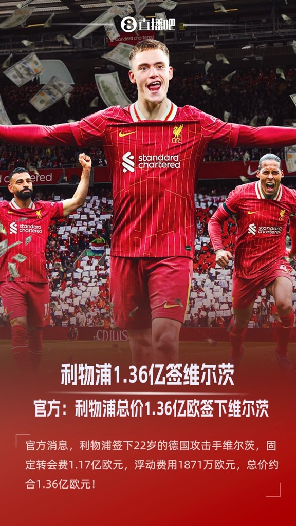 创纪录引援!官方:利物浦签下22岁维尔茨,转会费总价1.36亿欧